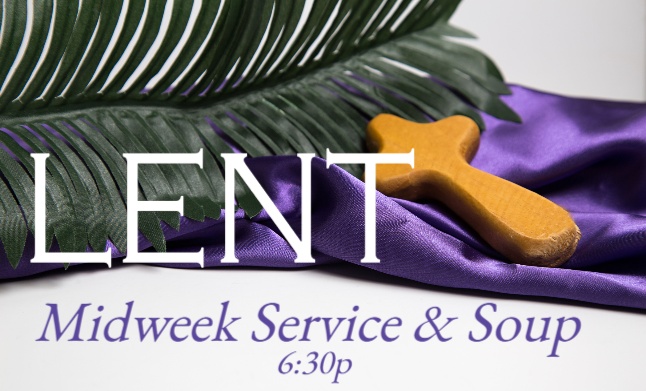 Join us on Wednesday evenings during Lent for our Mid-Week Lenten Service and Soup suppers at 6:30p